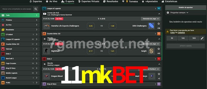 O 11mkbet oferece uma grande seleção de opções de apostas em e-sports com probabilidades competitivas